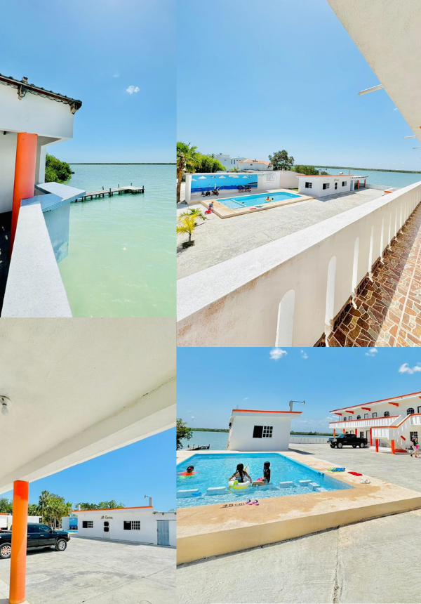 Prepárense pa’ disfrutar al cien: habitaciones con cama matrimonial, clima, TV y baño con agua caliente y fría. Además, área de asador, alberca pa’ refrescarse, tienda de conveniencia, muelle pa’ echar la caña, y una zona de cocina, comedor y baños comunitarios bien equipados. Todo listo pa’ que la pasen con madre, cómodos y en buena compañía.